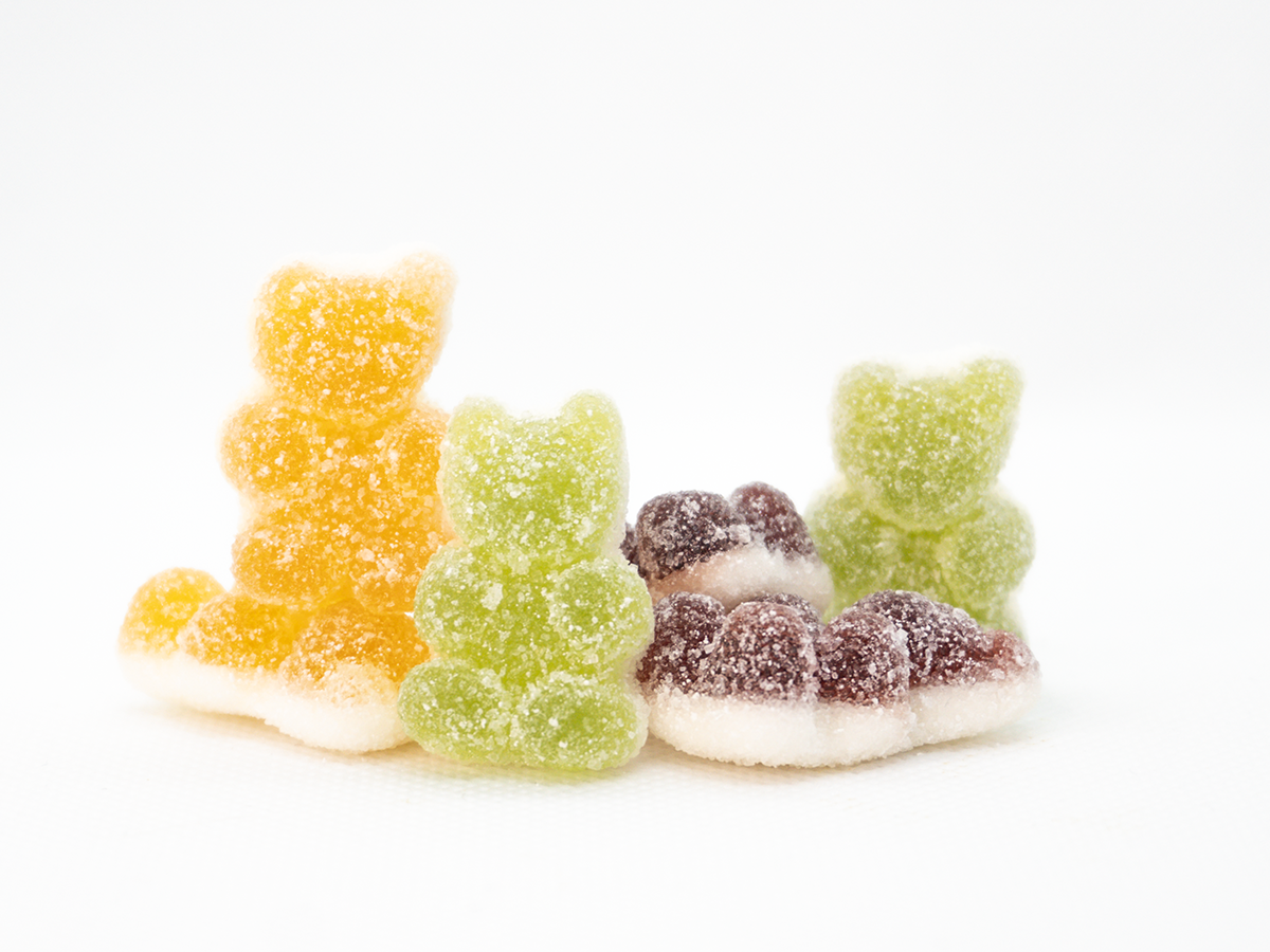 Zutaten: Glukosesirup; Zucker; 14 % Fruchtsaft aus Fruchtsaftkonzentraten (Orange, Birne, Zitrone, Apfel, Schwarze Johannisbeere, Himbeere); Gelatine; Säuerungsmittel: Citronensäure, Milchsäure, Apfelsäure; Säureregulator: Calciumcitrate, Natriummalat; färbende Lebensmittel (Karotte, Zitrone, Saflor, Rote Beete, Spirulina, Karamellzuckersirup); Aroma.