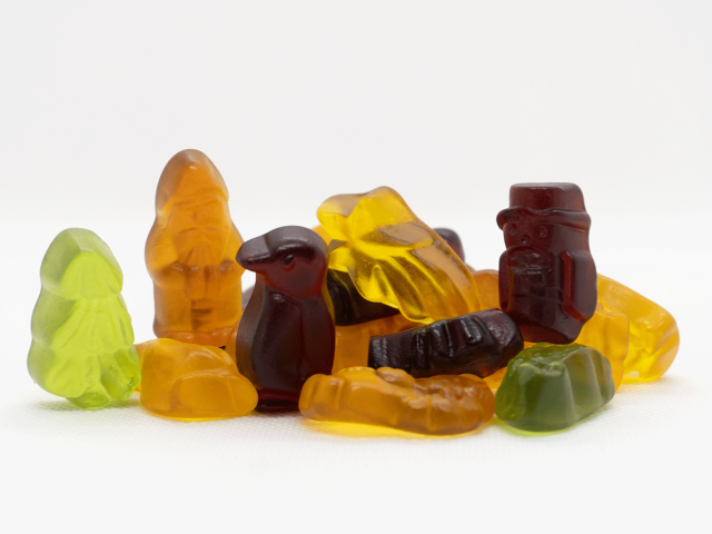Zutaten: Glukosesirup; 23 % Fruchtsaft aus Fruchtsaftkonzentraten (Orange, Apfel, Zitrone, Schwarze Johannisbeere, Erdbeere); Zucker; Gelatine; Säuerungsmittel: Citronensäure; färbende Lebensmittel (Schwarze Johannisbeere, Karotte, Zitrone, Saflor, Spirulina, Karamellzuckersirup); Aroma; Überzugsmittel: Bienenwachs weiß und gelb, Carnaubawachs.